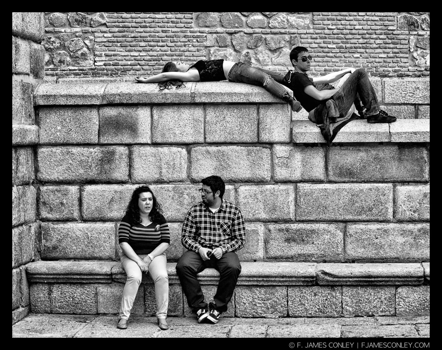 As you integrate yourself into the environment and engage in the process of participation and then observation, the place will begin to reveal itself to you on deeper and deeper levels. You will start to perceive patterns of behavior and activity. As these new aspects become apparent you can make sense of them with the concepts of proxemics, which will help you not only interpret the physical behavior or your subjects, but to also anticipate their activity so that you can time decisive moments.