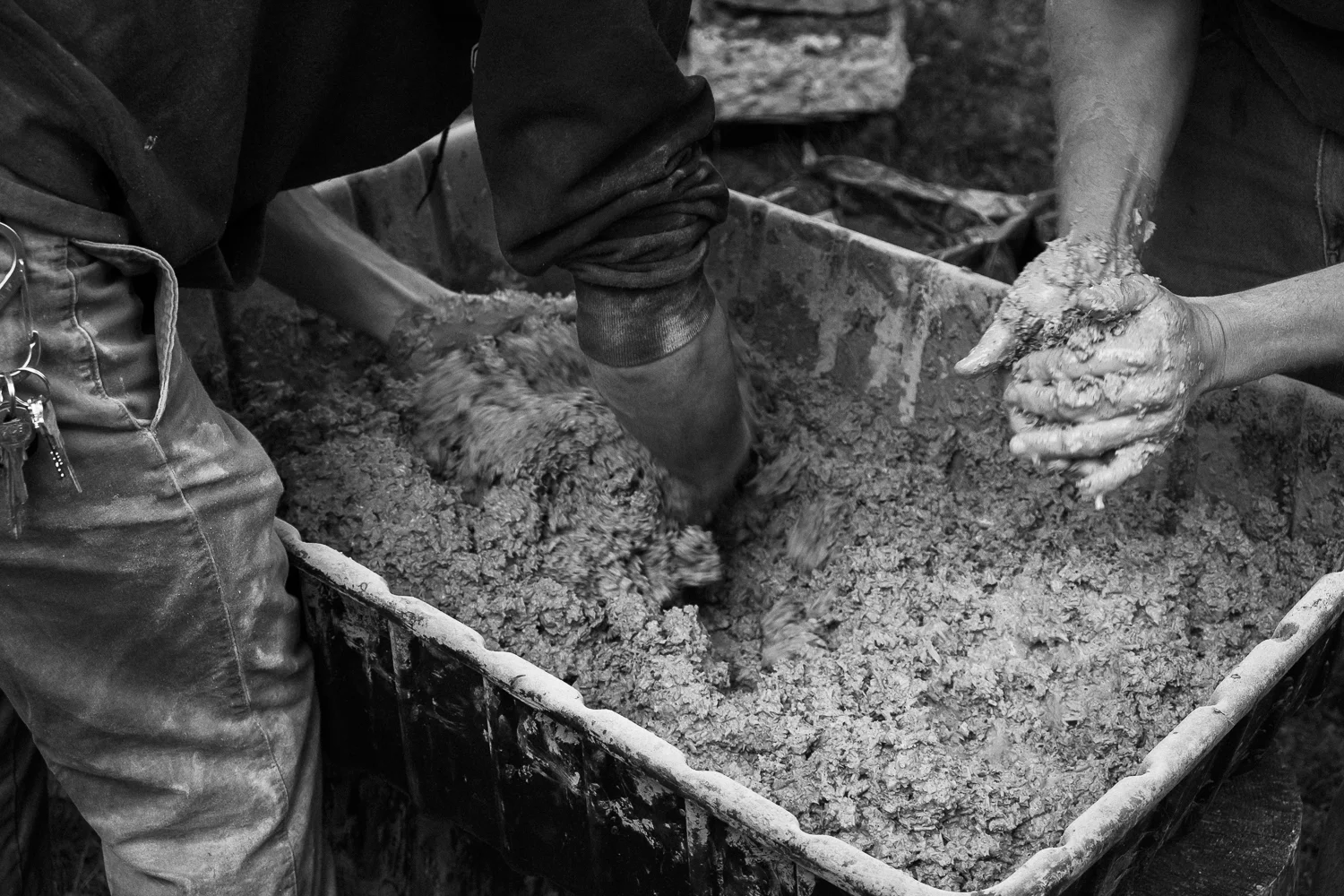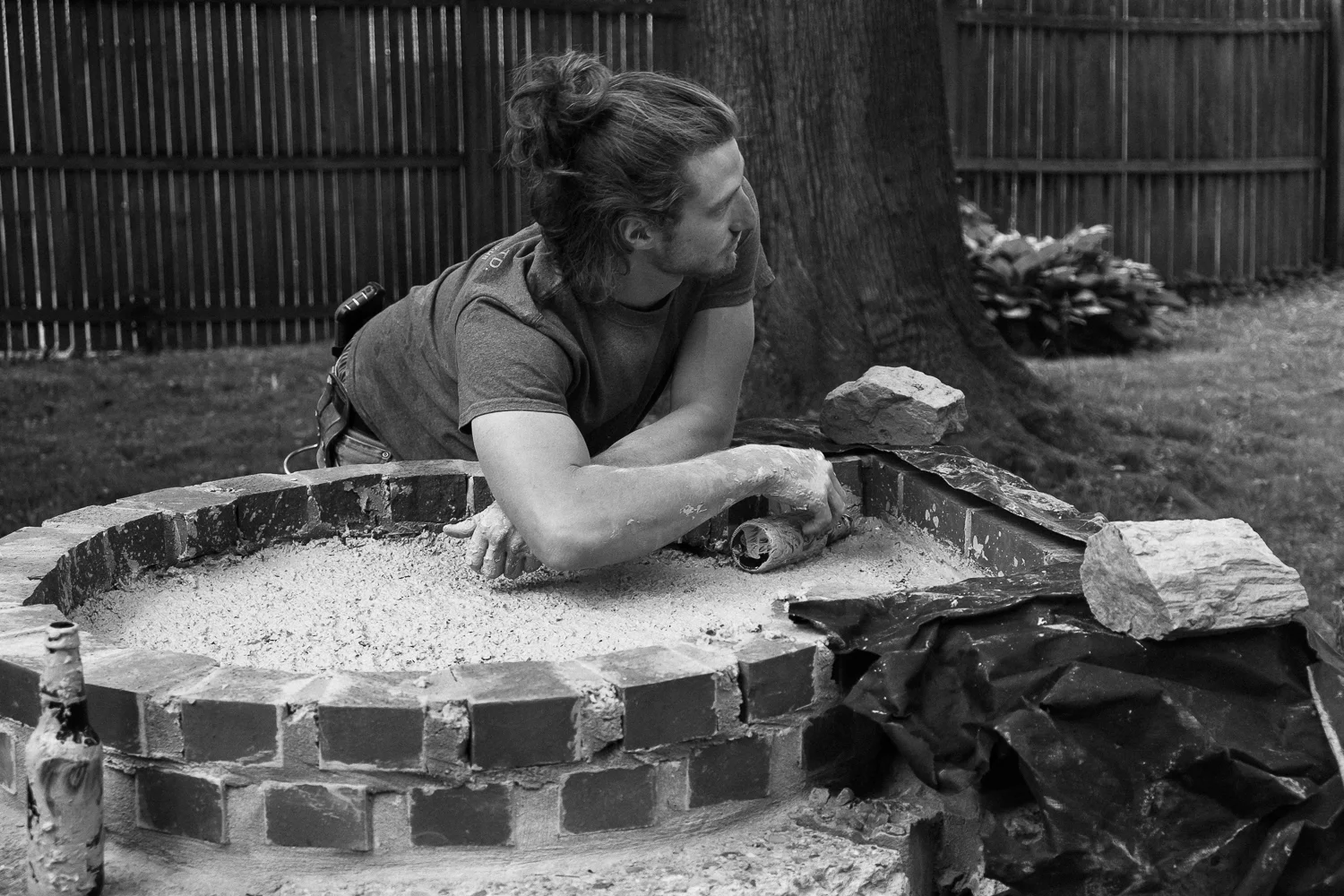 We met Sam and Lenny through a neighborhood app. Sam is a baker, and Lenny is a mason. They were interested in experimenting with design ideas for a clay oven, and needed a place to build. We happily offered, which gave me the chance to document pieces of the build along the way. The process took several months, through the cold and rainy spring and into the summer, giving great opportunities for photographs.